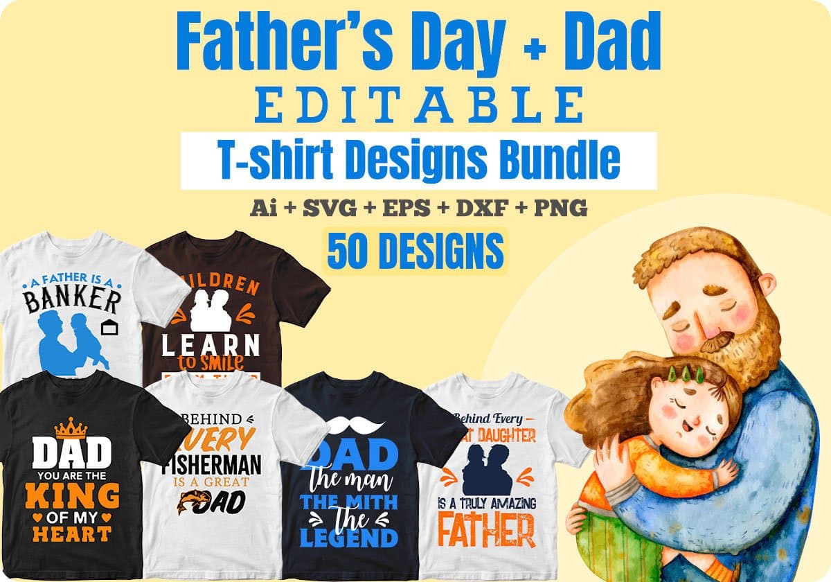 Father's Day 50 Editable T-shirt Designs Bundle Part 1 is Included in