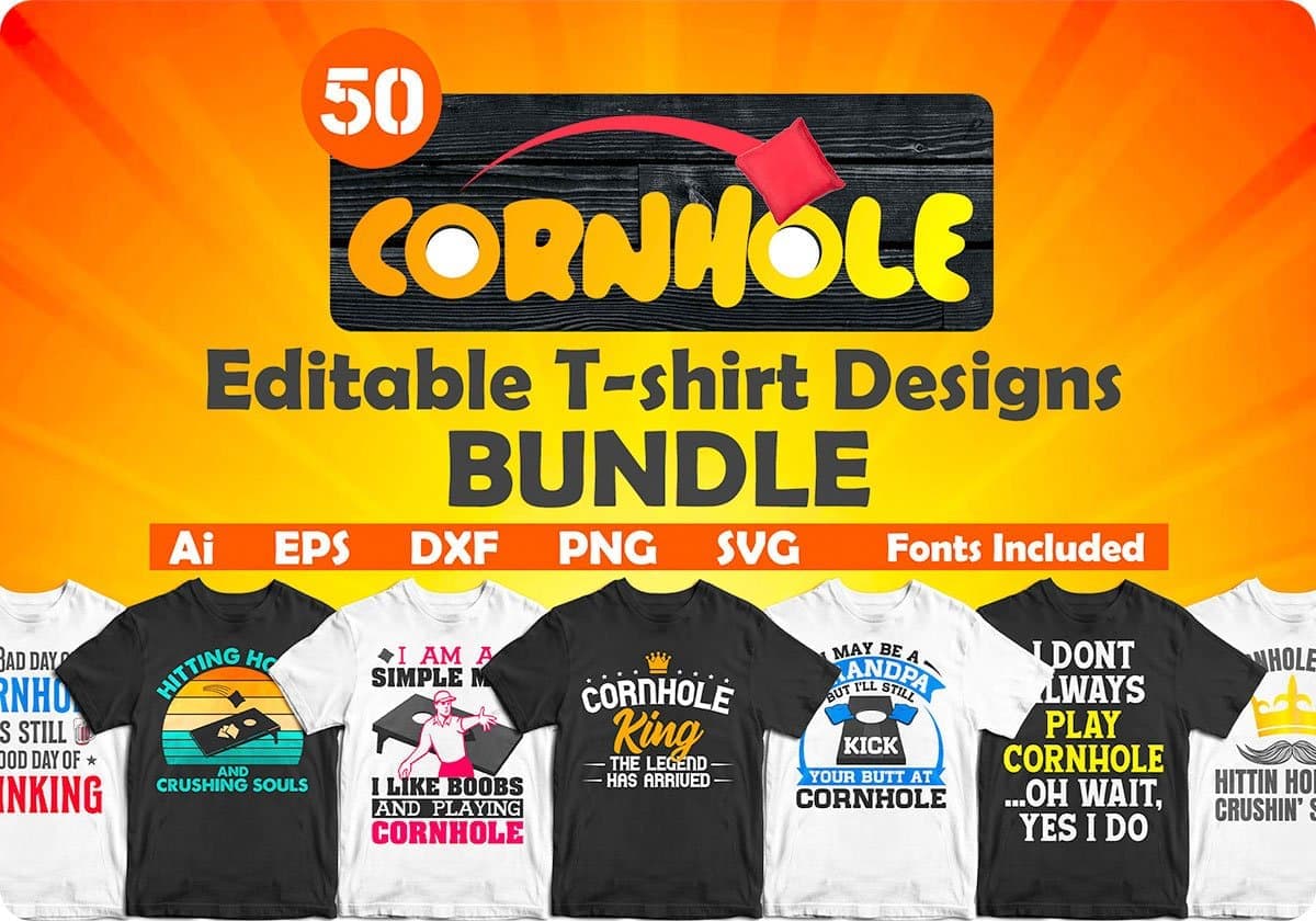 Cornhole 50 Editable T shirt Designs Bundle Part 1 is Included in