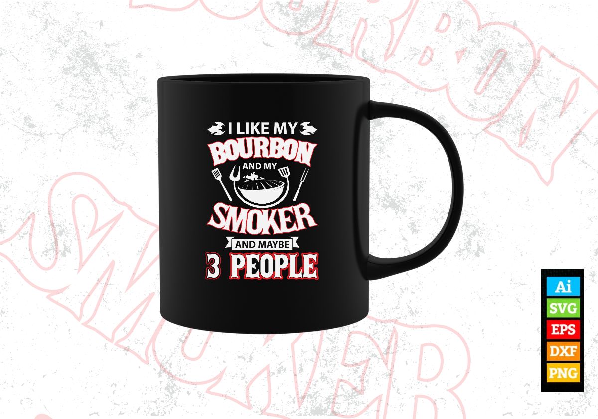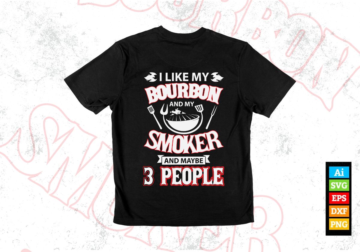 I Like Bourbon My Smoker 3 People Funny BBQ Editable Vector T shirt Design in Ai Png Svg Files.