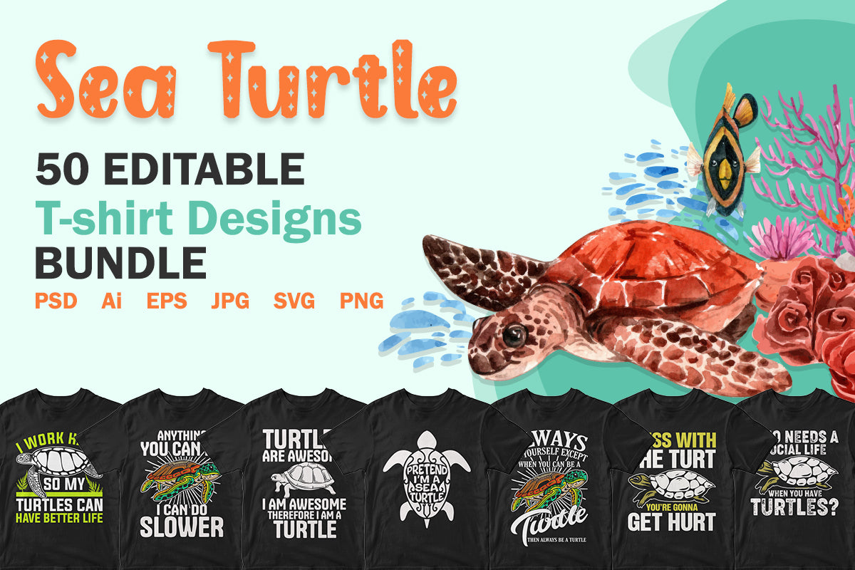 50 Sea Turtle Editable T-shirt Designs Bundle.